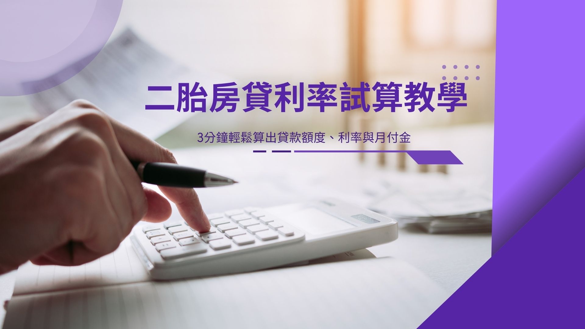 - 二胎房貸試算:一定要把一胎餘額先扣掉,並把費用與 APR算進去;二胎利率通常更高、年限也常更短,所以月付與總利息敏感度更高。